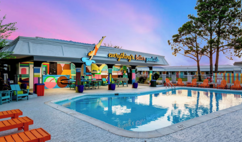 A vibrant inn in College Station, TX, featuring premium bedding, memory foam beds, and modern workspaces. Guests enjoy free breakfast, an arcade/game room, outdoor pool, and bar, ideal for families and travelers exploring the area.